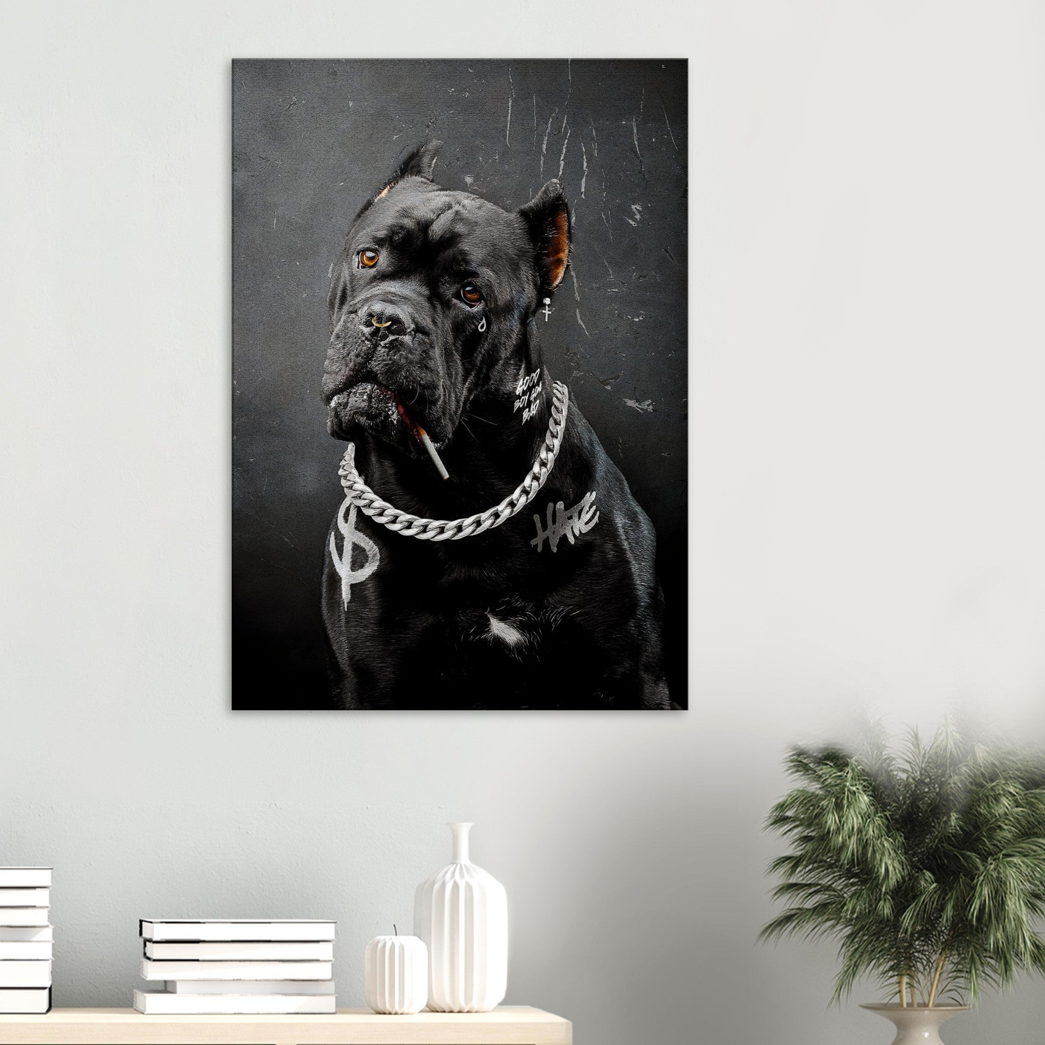 Bold, fearless, and unapologetically cool — this striking piece turns attitude into art. Featuring a powerful black dog adorned with... Read more